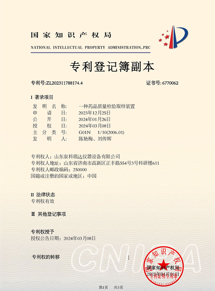 藥品質量檢驗取樣裝置